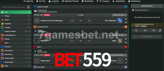 O bet559 oferece uma grande seleção de opções de apostas em e-sports com probabilidades competitivas